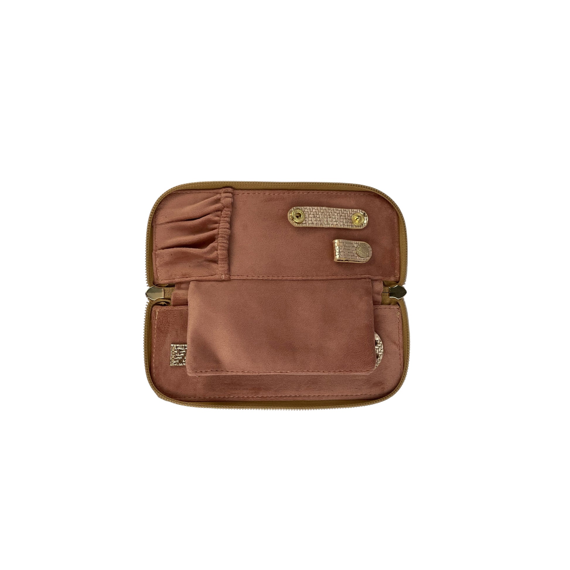 - Deslizadores, herrajes y broches dorados.